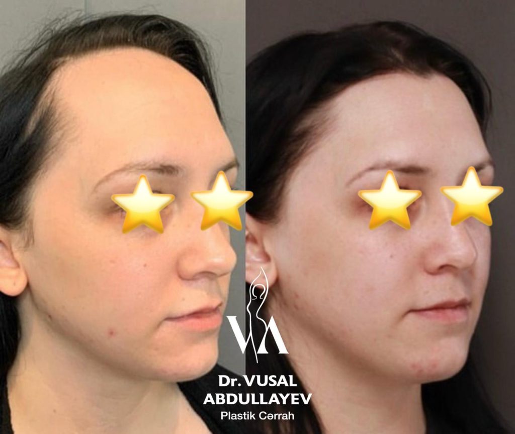 Normaldan daha böyük alının kiçildilməsi üçün və görünüşünüzü daha da gözəlləşdirmək üçün ən gözəl seçim- alın gərmə əməliyyatıdır. Pasientin fotosundan da gördüyünüz kimi hər hansı bir kəsik izi qalmır.