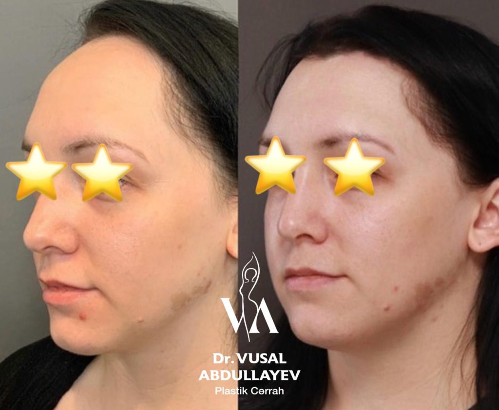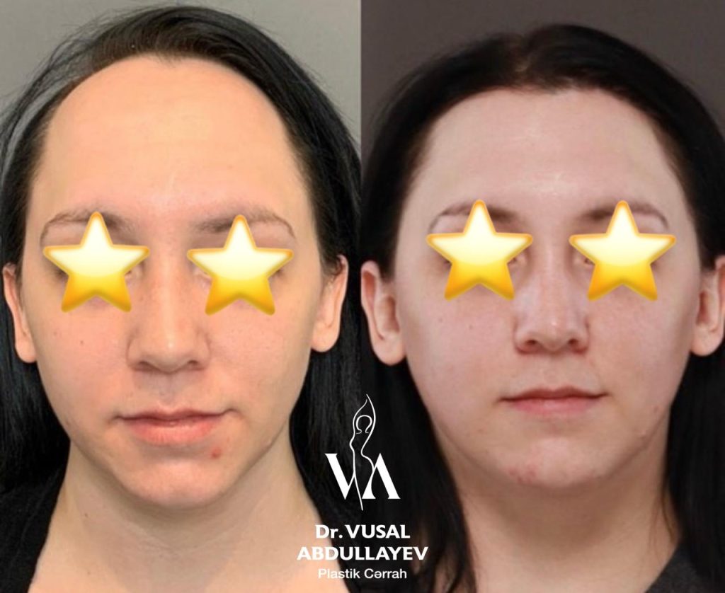 Alın gərmə əməliyyatından öncə və 3 ay sonraki nəticə.