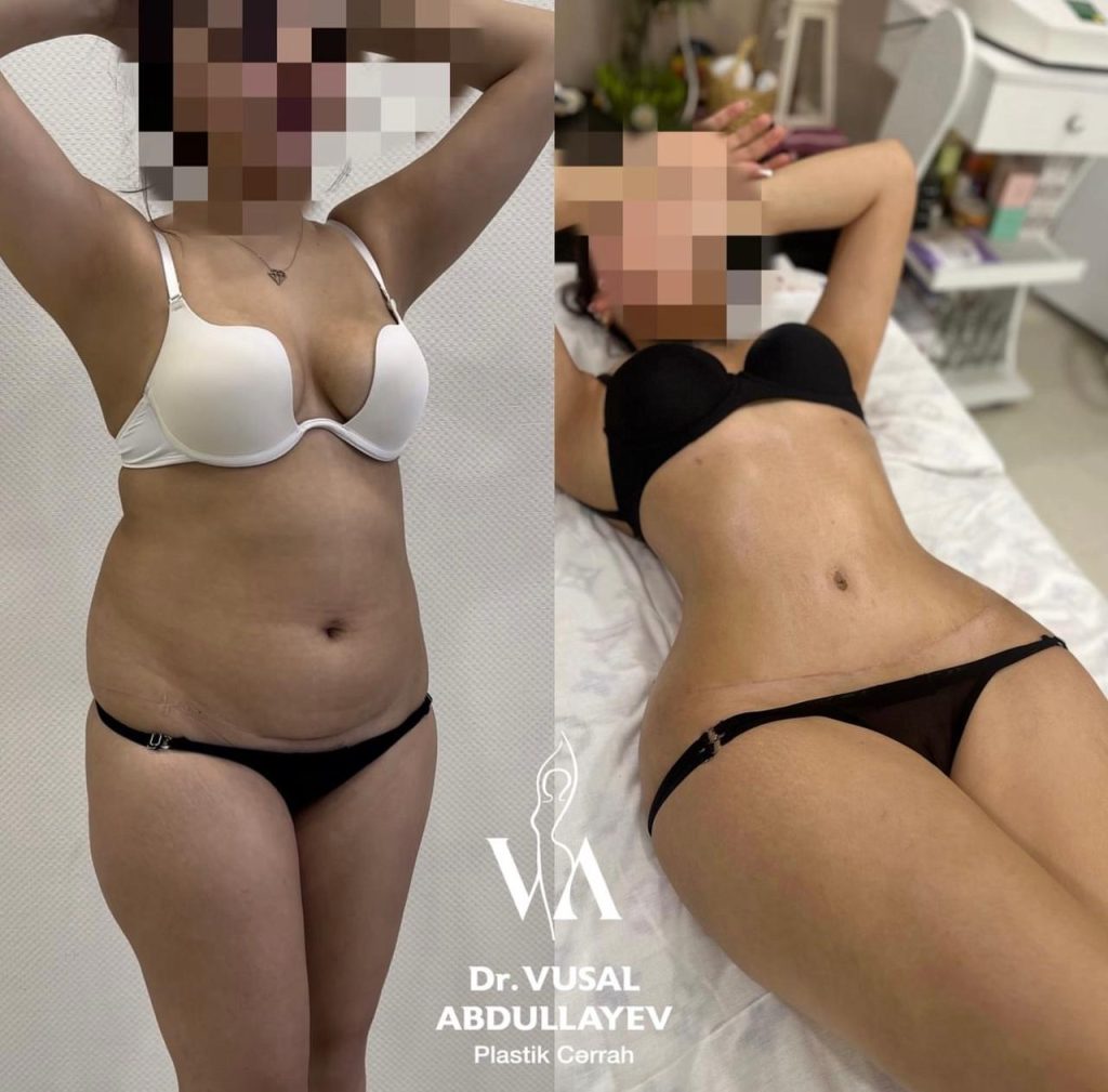 Abdominoplastika və bədən şəkilləndirmə əməliyyatından 1 ay sonraki nəticə. Şəkildə gördüyünüz kimi, bu əməliyyatdan sonra iz demək olar ki, qalmır. Eyni zamanda nəzərinizə çatdıraq ki, bu tam nəyicə deyil. Tam nəticə 5-6 ay tamamında bilinir.