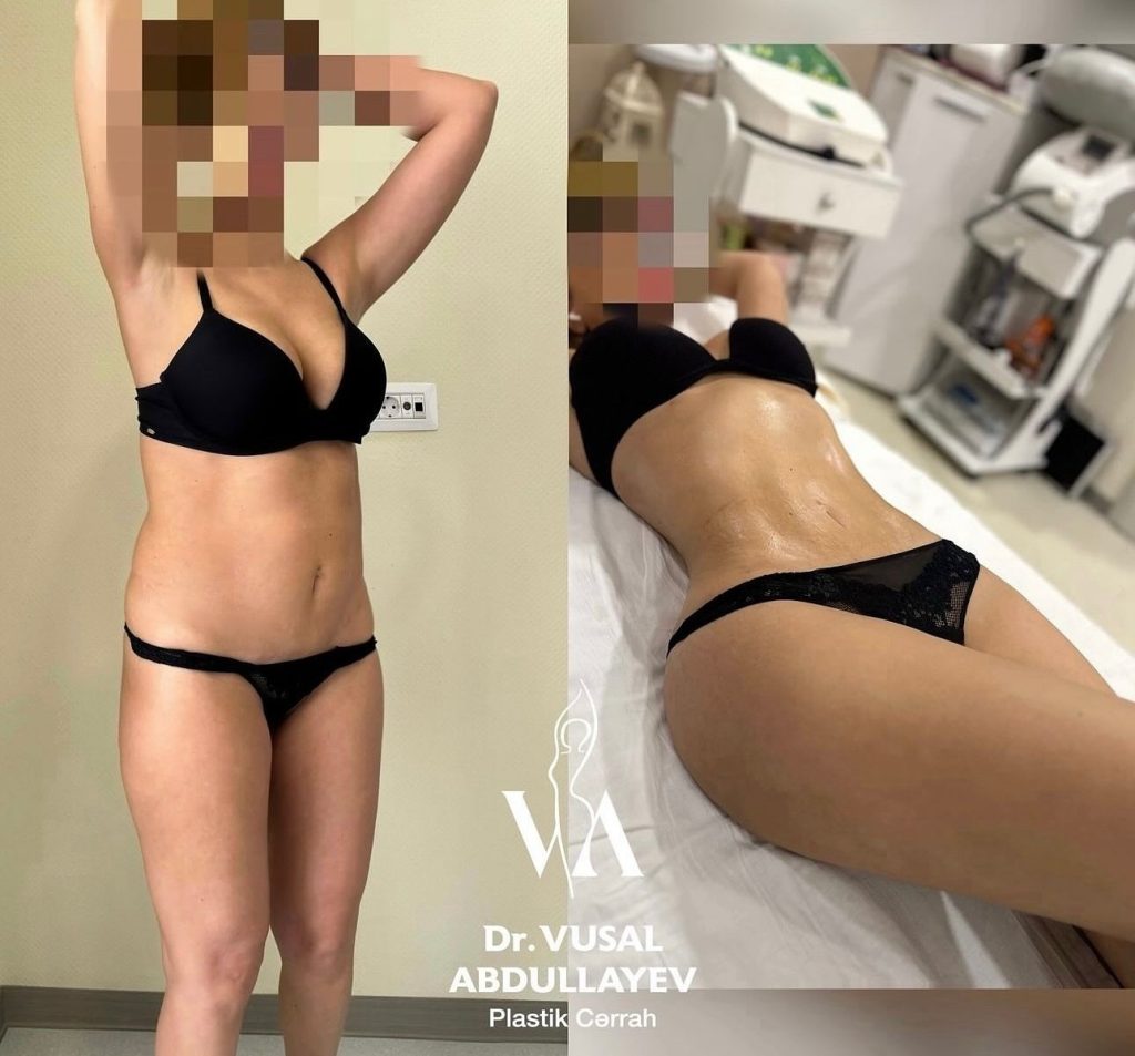 Bədən şəkilləndirmə və sinə kiçiltmə dikləşdirmə əməliyyatından sonra.
